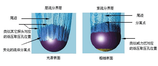 根據空氣動力學原理設計的前粗糙表面層流邊界層和紊流邊界層的比較