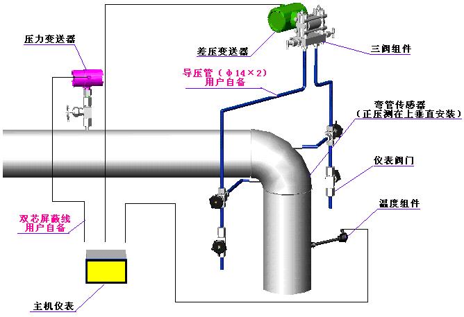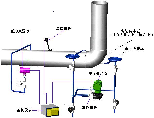 1. 測量煤氣、空氣等彎管流量計系統構成
